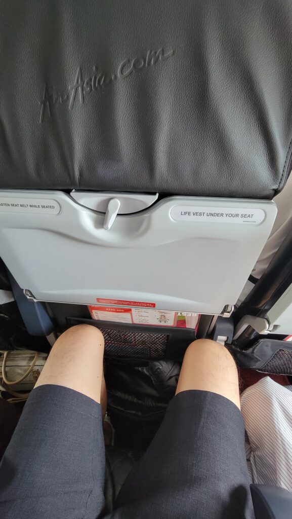 👇そして飛行機に搭乗♪さすがにエコノミークラスで少し狭いですが、1時間弱なので我慢です・・・。