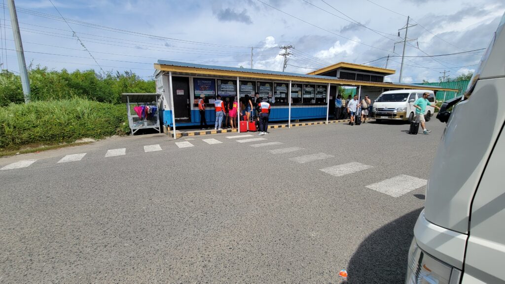 👇空港の到着ゲートから港までは2.3kmほどで少し距離があるので、ツアーで送迎バスで移動するか、トライシクルを利用するのが良さそうです。