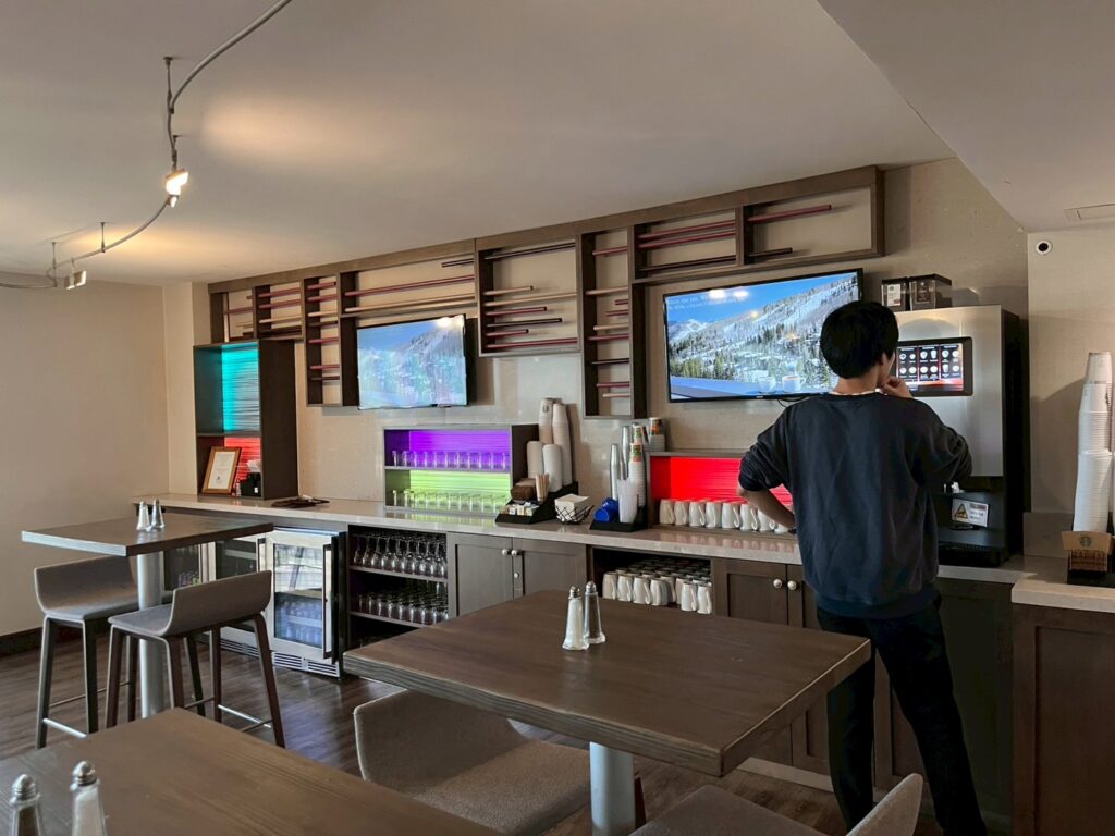 ラウンジは18階にあり、時間帯によって軽食やドリンクサービスが提供されています。