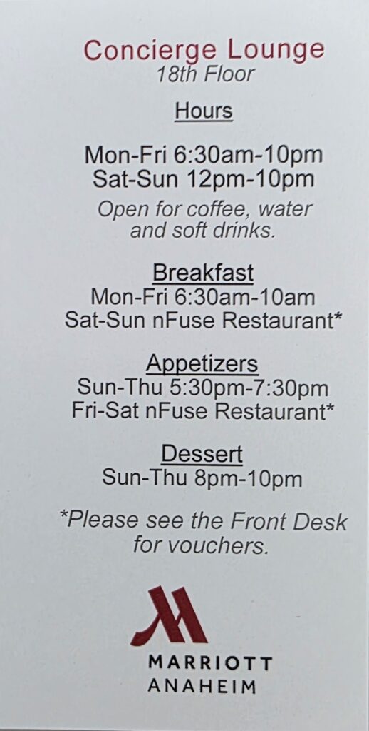 こちらのアナハイムマリオットは、プラチナ会員特典が充実していました!
