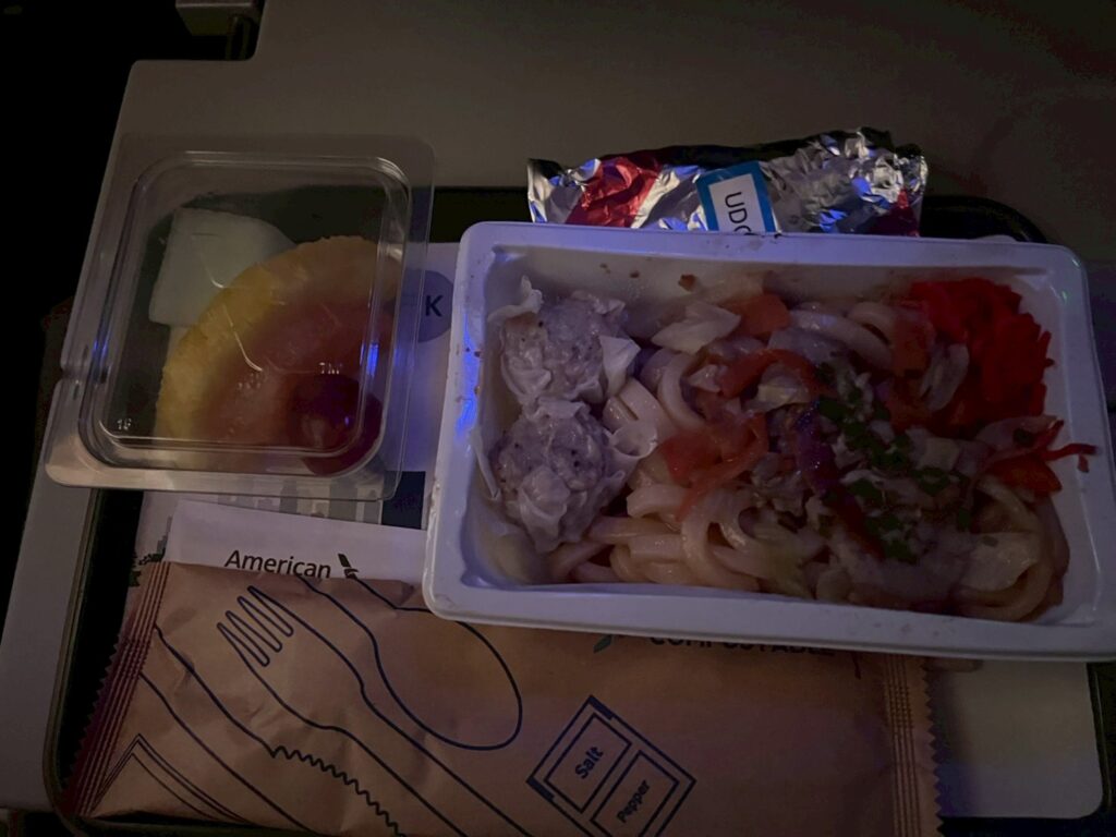 👇 機内食はこんな感じ! フライト中に2食出てきました。(2人分の写真を載せています。)